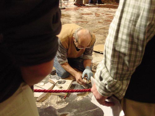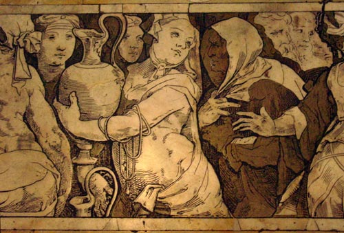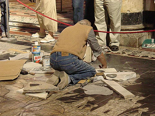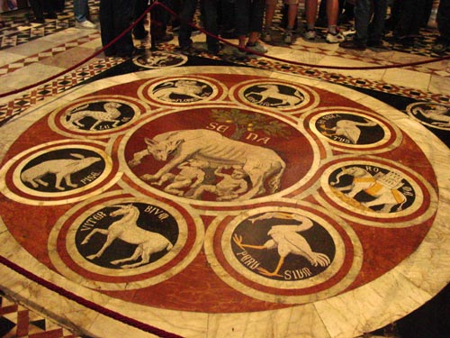 This time we got to go inside, and we got lucky - the floors are decorated with inlaid patterns which are only uncovered for one month a year, and we happened upon that month. There are numerous scenes in the floor - here are a couple.