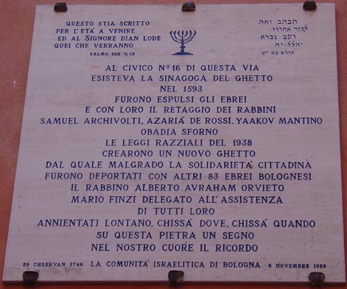 marker for the synagogue in the ghetto of Bologna |