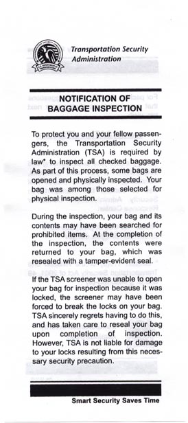 I thought that was interesting - I expect (and hope) that they check all bags thoroughly, but I didn't expect to be told that they specifically checked mine....