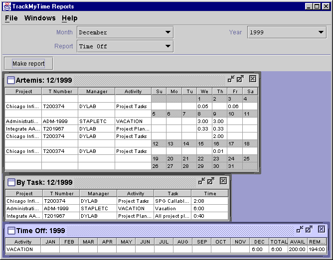 The Reports tool is used to create three kinds of reports based upon the data gathered from TrackMyTime and EditTime.