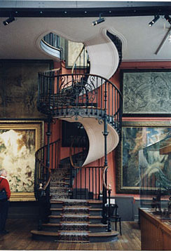 Gustave Moreau was a famous symbolist painter. The space is magnificent, covering three floors of his home. The first floor is his living space, including his military uniform (he was a decoorated officer),a painting of Moreau by Degas, and paintings of his family. There are two floors above (his old studio) crammed with drawings, watercolors, pastels and paintings. The drawings are in pull-out racks. This was worth the visit.