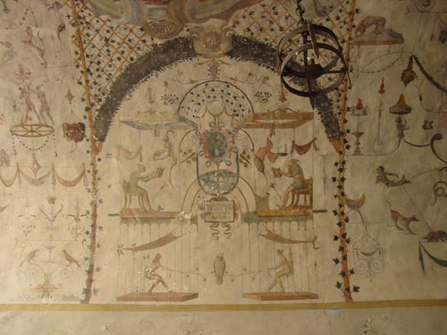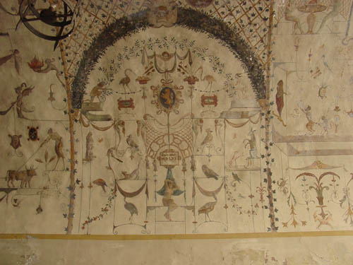 Then we went shopping. While walking through the Piazza de Comune in the center of town, we stopped at the old entrance to the fish market and photographed the grotesques on the ceiling.