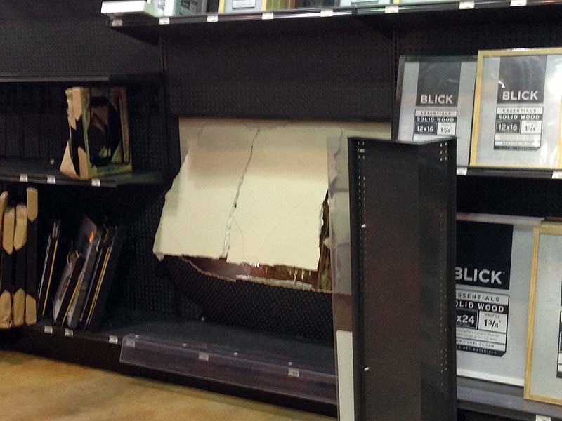 A car ran into the West Hollywood Dick Blick Art Supply store while we were there