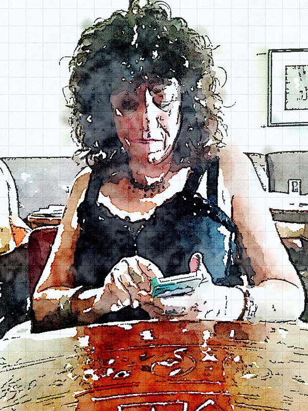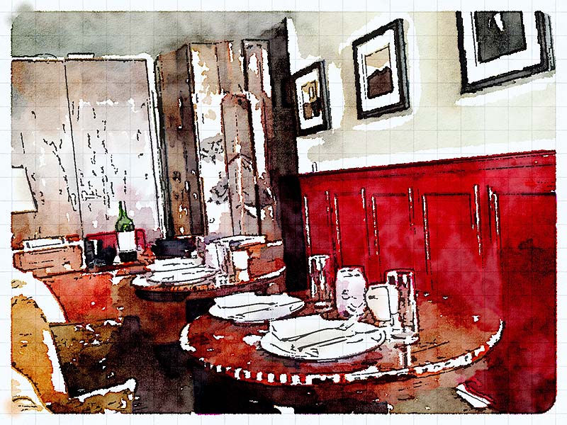 Last week we visited Bergamot Station and saw a show I liked at TAG Gallery. The artist used an app called Waterlogue, so I downloaded it and played with it at dinner last night – we went to Tagine to celebrate my birthday on Friday. They didn’t have authentic tagine, and the food was very good; they did have a deconstructed bastilla that was a fantastic appetizer.