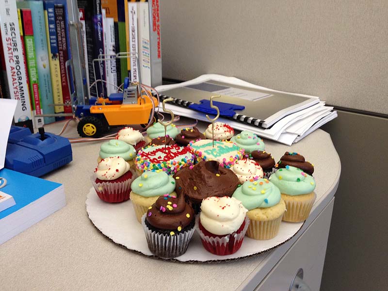 On Monday I left my desk for a few meetings and when I returned I found a balloon and cupcakes!