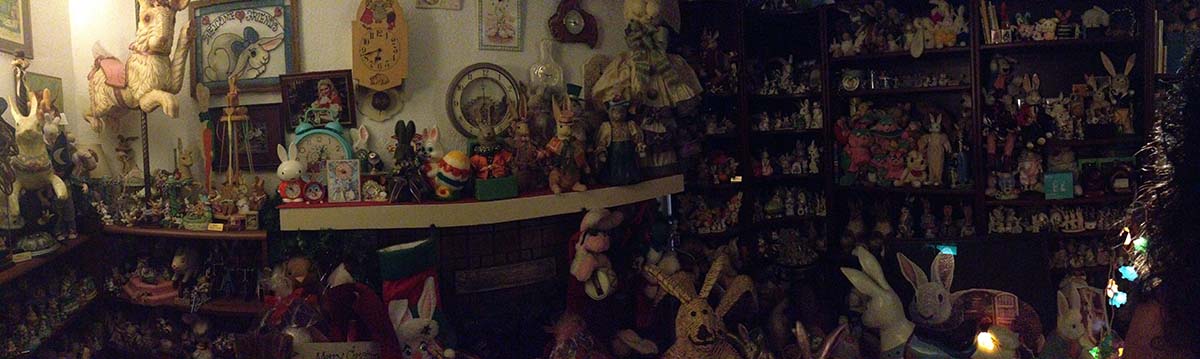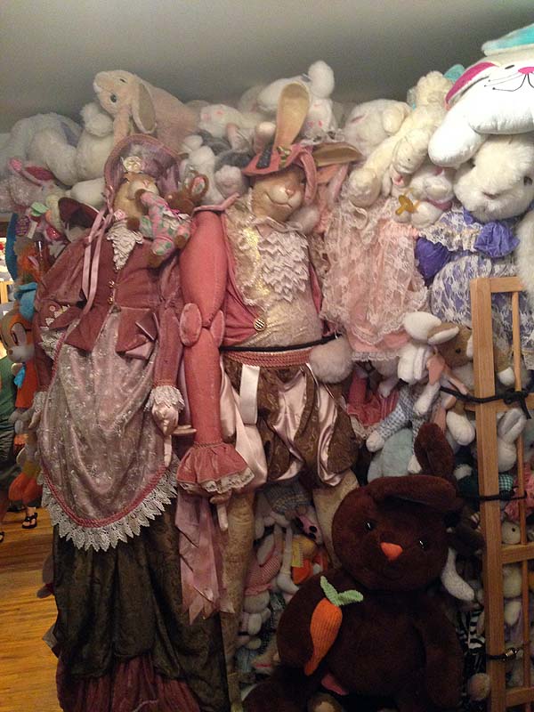 This is one wild place – wall to wall bunnies. Ceramic bunnies. Plush bunnies. Even stuffed bunnies – the family keeps live bunnies and when they die they have them stuffed and put on display (I petted one of the live bunnies). No furries however. They are trying to obtain a 12,000 sq. ft. new space – they need it!