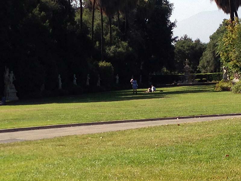 We had time to visit the Huntington Library. At one time the Huntingtons had the largest book collection in the United States. The grounds are huge and have a beautiful garden all around them. Visiting isn’t cheap ($25 a person), however, given the art gallery, book collection and grounds you could spend hours there. They have a few notable art works, most famous are probably “Pinky” and “Blue Boy” – we’re not fans of that period of art, we went right to the Renaissance collection. We also visited their standing book exhibit, which is amazing – they have a Guttenberg Bible and an original press of Shakespeare’s Hamlet.