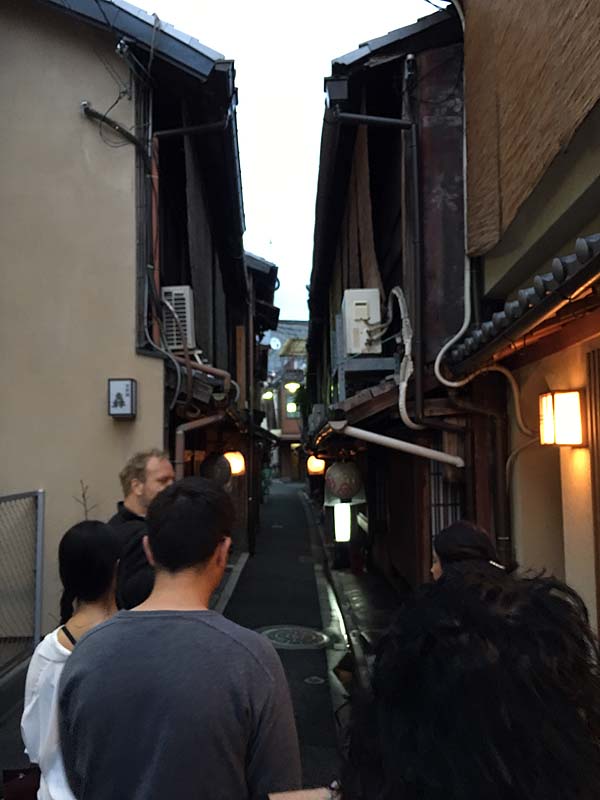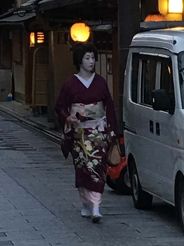 We did the geisha walk with Peter MacIntosh – very cool, we learned a lot. Geisha are actually entertainers, not prostitutes. They typically specialize in music or dance. They are not allowed to marry – our tour guide married a geisha and she had to retire. There are lots of women walking around in kimono – they are not geisha, there is a thriving kimono rental business in Kyoto. You can tell by the hair (for younger geisha} and the makeup (if its getting near 6P).