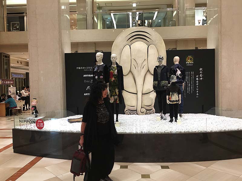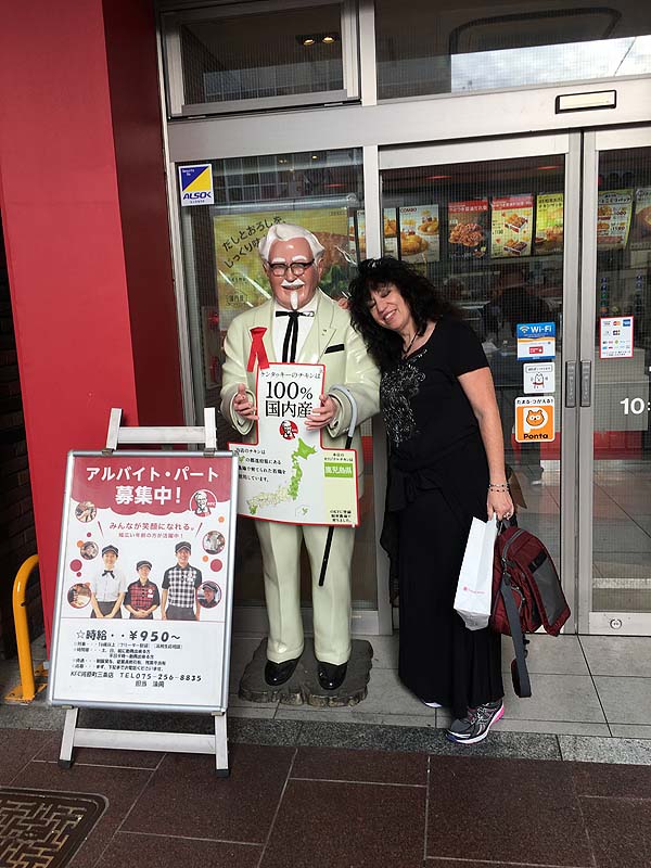 We’re not what we once were. We decided to go back to Tokyo Friday so we’d have more time for trains and transfers to get home instead of trying to negotiate the train from Kyoto to Tokyo Station, the subway to Shinjuku Station (the busiest train station in Japan), the shuttle back to the Hyatt and then the limo to the airport all in one day. So we went to the train station to change our tickets (easy, the people at the JR counter in Kyoto speak English and Chinese and as usual were super-helpful) and had a nice lunch at the fabulous hotel attached to the train terminal (name/link?). Then we went to the largest mall I’ve ever been inside – multiple city blocks and at least 8 stories of shopping. We went to the Pokémon Center on the 6th floor and got the two plushies Nathan wanted. Then we shopped around. We decided not to go to the Imperial Palace – Aviva’s foot was hurting and it looked like a lot of walking (most temples and shrines are in the middle of a large complex so plan to walk). So we strolled back to the hotel, packed and rested, then shopped a little in the large arcade by the hotel. A guy convinced us to try his restaurant, however, it was all pork, so he took us around to corner to a friend’s place in a basement with yakatori. It was really good!