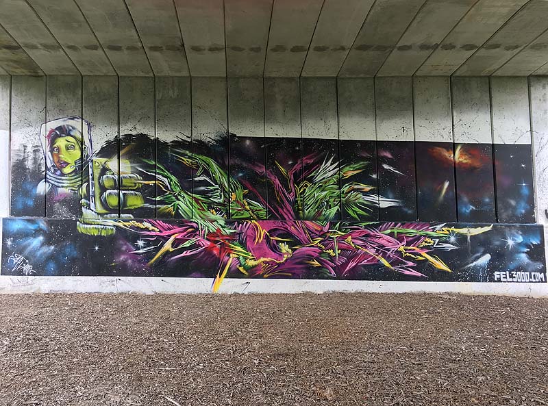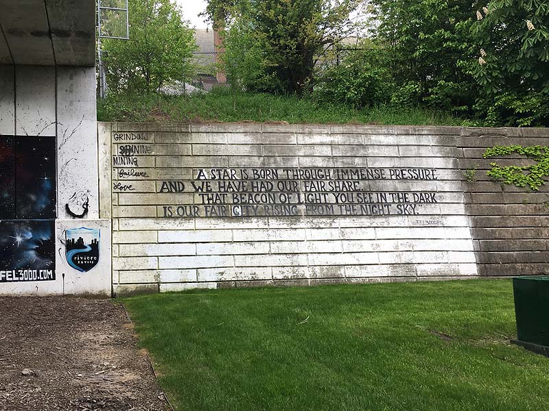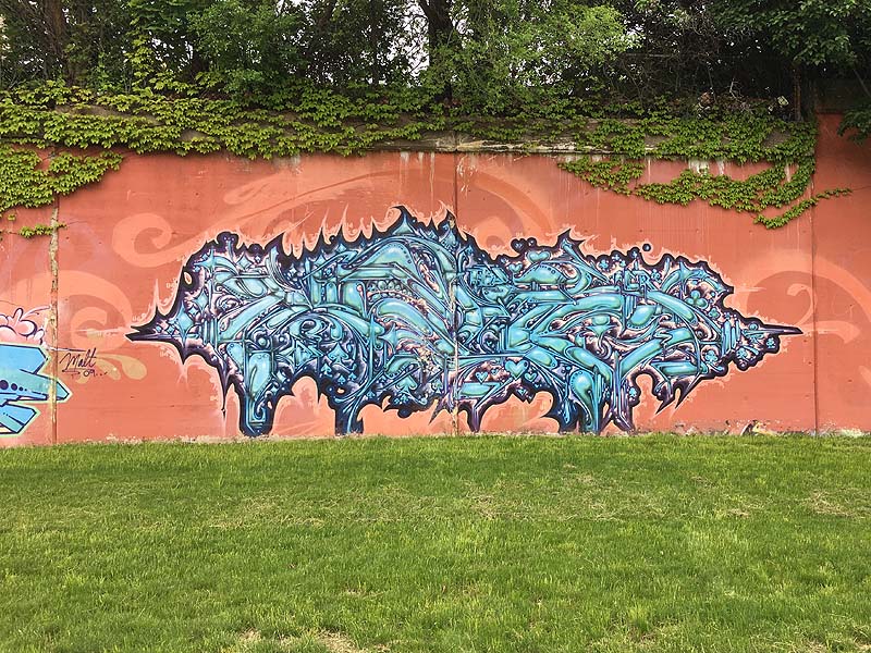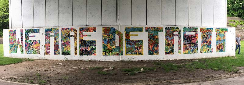A couple weeks ago we visited Detroit; Aviva took me to the Dequindre Cut, a former railroad line that’s now a greenway, walking/biking path, and graffiti art walk. Of course I took some photos and here they are.
