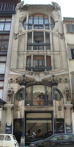 The art deco facade of a building near the Orgnissanti |